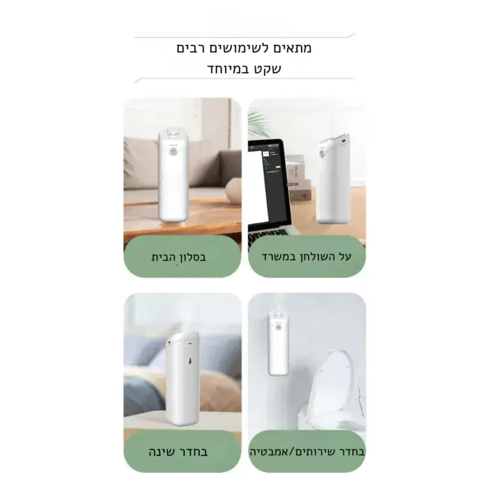 הכניסו ניחוח מרענן לכל חלל עם מפיץ הריח הקומפקטי שלנו, המתאים במיוחד למשרדים, חדרים קטנים, שירותים ועוד.